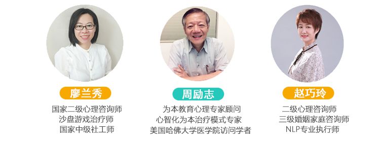 周鈺清為本教研專家導(dǎo)師國(guó)家二級(jí)心理咨詢師美國(guó)NGH催眠治療師中國(guó)心理健康委員會(huì)理事廣東省心理咨詢師協(xié)會(huì)理事個(gè)人簡(jiǎn)介為幼兒園、小學(xué)、初中、高中等不同年齡段家長(zhǎng)舉辦親子溝通講座及沙龍,加強(qiáng)家、校互動(dòng),結(jié)合家長(zhǎng)、學(xué)校共同為孩子的心理成長(zhǎng)獲取更適合的方法;對(duì)特殊兒童、問題兒童開展個(gè)體、團(tuán)體心理輔導(dǎo);設(shè)計(jì)不同年齡段兒童社交能力、學(xué)習(xí)能力、增強(qiáng)